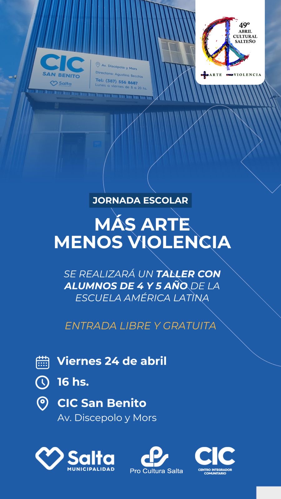 Literatura & Conferencias Jornada Escolar “Más Arte, Menos Violencia” Taller con los alumnos de 4to y 5to año. Escuela América Latina. VER EVENTO