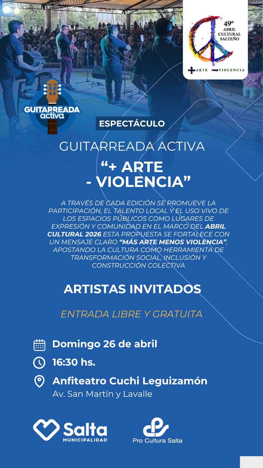 Música Guitarreada Activa “+ Arte – Violencia” Apostando a la cultura como herramienta de transformación social, inclusión y construcción colectiva. VER EVENTO