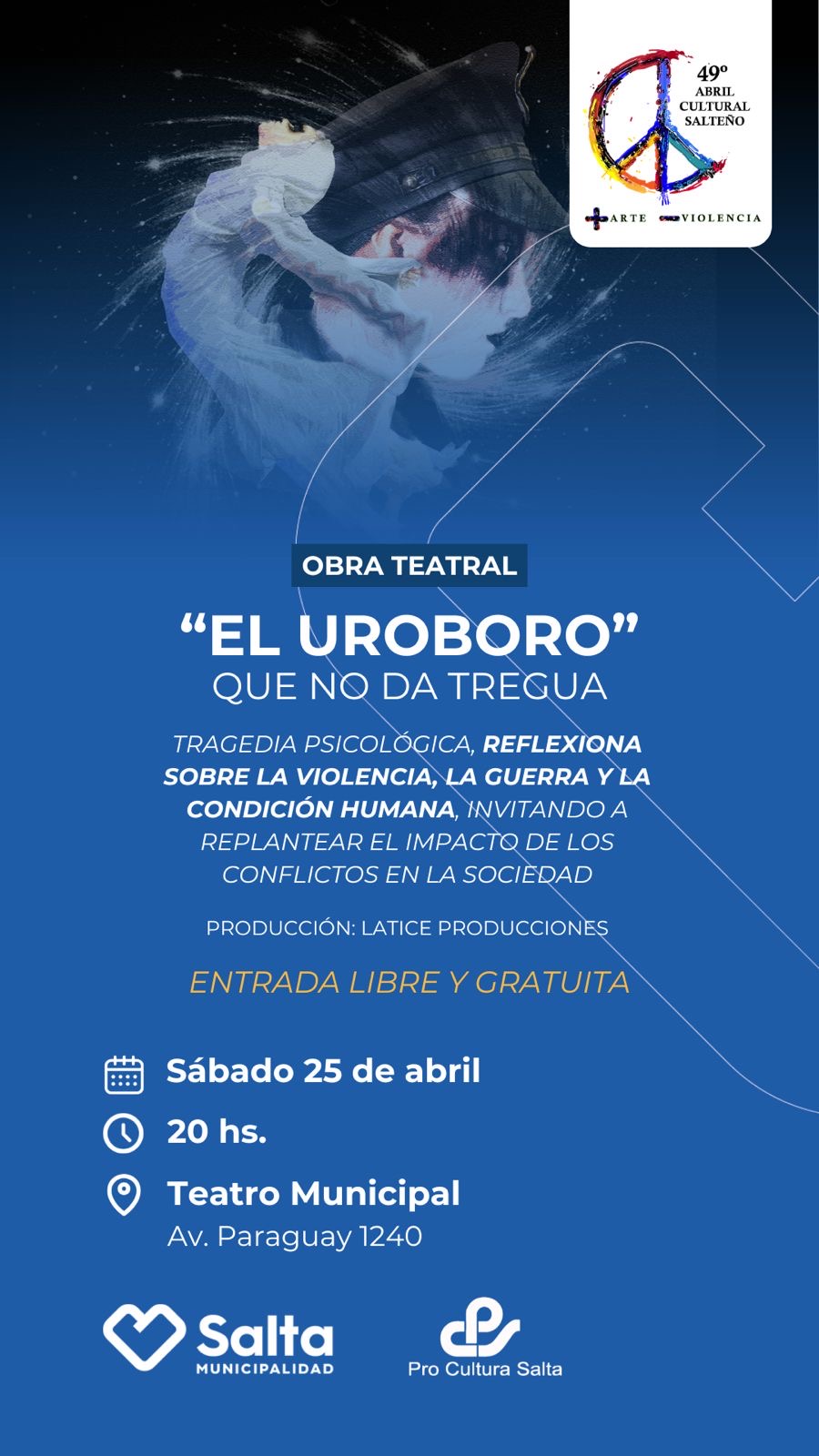 El uroboro que no da tregua es un drama psicológico que hace reflexión sobre la violencia en su forma más dañina, la guerra. También reflexiona a cerca del ser y su verdadera naturaleza. Con escenas que oscilan entre la cotidianidad y la psicodelia, es una obra de la cual nadie está excluido, ya sea de forma directa o simbólica, busca hacer sentir profundamente identificado al espectador.